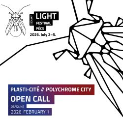 This jubilee year unfolds in a unique artistic context: 2026 marks the 120th anniversary of Victor Vasarely’s birth, making it a commemorative year in Pécs. The world-renowned artist, born in Pécs, remains a vital source of inspiration for contemporary light and digital art. This year’s festival theme – PLASTI-CITÉ // CITY IN COLOUR – encourages artists to revisit and reinterpret Vasarely’s ideas of visual perception, geometry, and optical illusion through a contemporary lens.